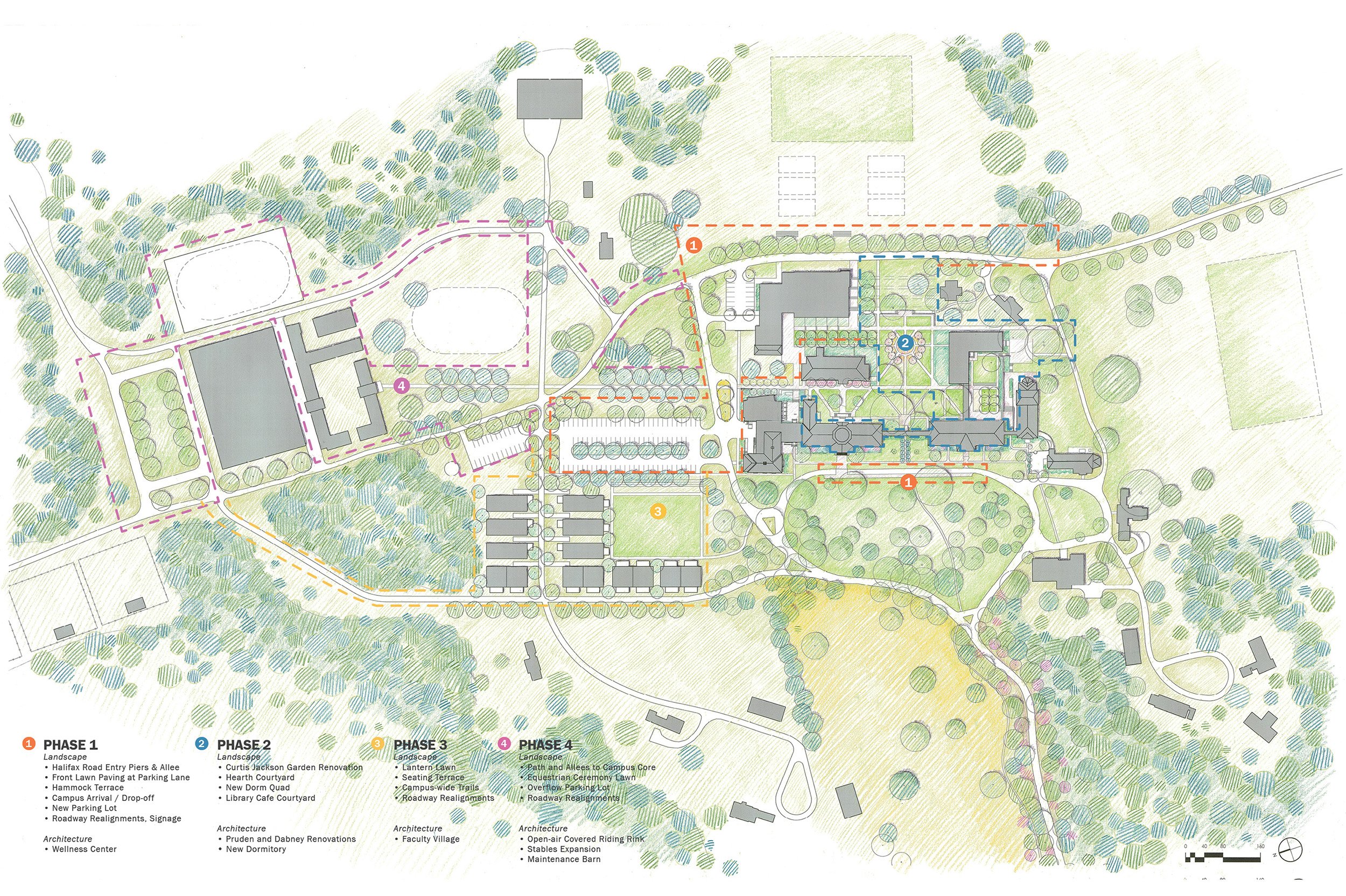 The impetus for the Chatham Hall Master Plan was to improve health and wellness for the students and faculty through a higher quality residential experience with modernized housing, stronger community areas, and more desirable outdoor environments within the overall campus. The master plan analyzes future building needs in the core campus and provides a larger scale assessment of the overall 365-acre property, evaluating the forest, fields, arrival, circulation, as well as the school’s distinguished equestrian center. The design team established a baseline of existing conditions - evaluating size, aesthetics, function, and present and future maintenance costs.